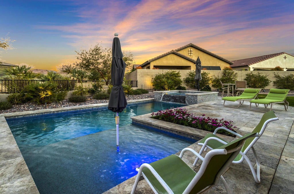 Available Oct-Jan 1, 2026 In the beautiful 55+Community of Del Webb Rancho Mirage is this special home. A 2 bedroom 2 bath fully furnished short term rental. The living room, dining room and kitchen open to the designer backyard with double sliding doors. It has a custom designed pool and spa, covered patio, BBQ station, built in fire pit and waterfall. With bocce ball court, citrus trees and a nice grass area to enjoy. The interior has all the upgrades in the kitchen and thru out the home to enjoy entertaining family and friends. The Del Webb Community offers tennis, pickle ball, Clubhouse, fitness center and much more. $8,500 for Oct, Nov, Dec, 2025 months.