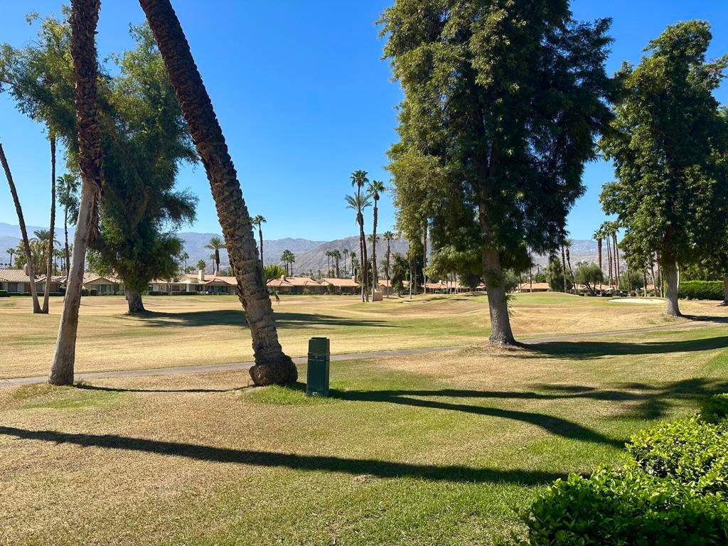 Enjoy resort-style living in this light and bright 2 bedroom, 2 bathroom condo plus a spacious den/extra room, located on the golf course with breathtaking mountain and fairway views.This home features an open-concept living area with vaulted ceilings, expansive windows, and sliding glass doors that fill the space with natural light and highlight the scenic outdoor setting. The kitchen offers plenty of counter space, white cabinetry, and a charming breakfast nook overlooking the course.The primary suite boasts mirrored wardrobe doors, direct access to a private bath, and plantation shutters for a crisp, clean look. The secondary bedroom is well-sized, ideal for guests or family, and the additional den provides flexible space for an office, media room, or extra sleeping area.Step outside to your extended patio and take in the serene mountain backdrop and manicured golf course, perfect for morning coffee or evening gatherings.Additional highlights include updated flooring throughout, in-unit laundry, and convenient proximity to community amenities. This is the perfect long-term lease for those seeking comfort, style, and a quintessential desert lifestyle.
