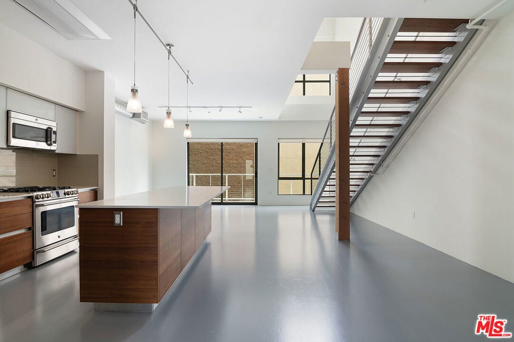 Contemporary loft living at its finest in this thoughtfully designed 2-bedroom, 3-bathroom residence located in the coveted T-Lofts community. The main level boasts a spacious open-concept layout with polished concrete floors, dramatic double-height ceilings, and a private balcony. The sleek, modern kitchen is outfitted with stainless steel appliances, soft-close cabinetry, connecting to expansive living and dining areas. A flexible den space on the main floor offers the ideal setup for a home office, creative studio, or guest nook. Upstairs, both bedrooms are privately tucked away, including a primary suite featuring a soaking tub, separate glass-enclosed shower, and a generous walk-in closet. Enjoy community amenities including a fitness center, relaxing spa, BBQ area, and beautifully landscaped grounds. The unit also includes two assigned parking spaces, plentiful guest parking, and EV charging stations. Located just moments from the vibrant Sawtelle District, local beaches, top shopping!
