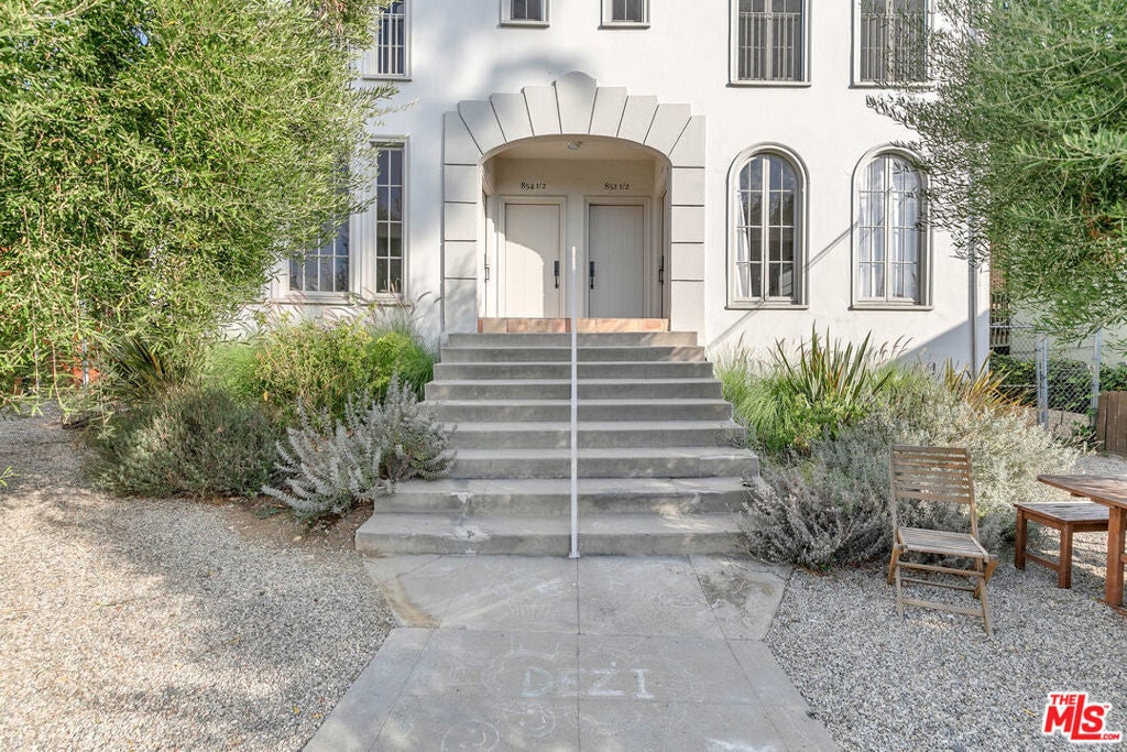 Nestled in the heart of Silverlake, just steps from the vibrant Sunset Junction, this tranquil lower unit of a charming 1920s Spanish building is a true gem. Reimagined with care, this space artfully blends historic character with modern updates. As you enter, large original windows bathe the living room in natural light, while curved archways welcome you into the dining and kitchen areas. The kitchen is the heart of the home, featuring stunning marble countertops and backsplashes, custom-built shelving, and a commercial-grade Italian range perfect for hosting memorable dinner parties. The original hardwood flooring flows throughout with custom sconces, creating a soft, inviting glow in the evenings. Down the hall, you'll find a beautifully remodeled bathroom showcasing stylish tile work, matte black fixtures, and additional storage for your convenience. Next is the first bedroom, perfect as an office or guest room, complete with a wardrobe for your belongings. At the end of the hall, the larger bedroom offers views of the backyard, a mini walk-in closet, and a ductless AC unit. This unit comes equipped with stacked laundry for added convenience and grants you access to half of the backyard, completely private for your enjoyment! You'll also find a communal grill and a cozy front seating area ideal for relaxing with neighbors or entertaining friends. Additionally, the unit includes a private compact one-car garage with storage, plus a designated parking spot right in front of it. Welcome home to the perfect balance of vintage charm and modern living!