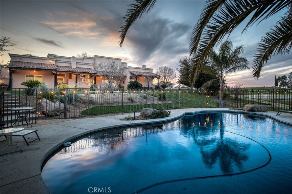 Welcome to this one-of-a-kind home that combines modern amenities, thoughtful design, and old-world charm, look no further than this gorgeous 4-bedroom, 3-bathroom, 3,330 sq. ft. property with a 600 sq. ft. detached in-law suite with a private entrance offers the perfect blend of independence and togetherness for a multi-generational family. Built in 2001, this Santa Fe-style estate features panoramic views of the foothills and is nestled on 5.4 acres of lush land. The private drive leads to a stunning entrance featuring a custom-made Mahogany door that welcomes you into the private compound. The home's interior boasts southwestern details and contemporary finishes, including hand-carved posts, rustic wooden beams, and corbels imported from Taos, New Mexico. Custom cabinetry, granite countertops, and modern appliances make the kitchen both inviting and functional. The spare bedrooms are bright, roomy, and overlook the impressive backyard. The spacious Primary suite comes complete with exposed beams, an Aspen T&G ceiling, a wood-burning fireplace, and private doors that lead into the backyard. The adjoining bathroom includes a full shower, mission-style tile, and elegant fixtures. The backyard is an entertainer's dream; the custom pool and inviting outdoor areas create an ideal backdrop for intimate gatherings and expansive parties alike. Owned solar 5.8 kw/36 panels, a separate 1,200 sq. ft. shop, and a newly installed 556 ft. well. Buyer to verify square footage.