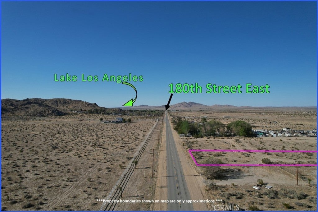 4.95 Acres (APN: 3030-008-009) GPS: 34.5969, -117.80908 According to the Los Angeles County the property [ ZONING ] A-1-2 Light Agriculture. Single family residences, crops, greenhouses, raising of cattle (horses, sheep, goats, poultry) are permitted uses in the area. [ POWER ] Overhead Powerlines run along 180th St E. (west property line) [ WATER ] Water is provided by the LA County WWD 40-35 district. Residents in the area have septic tanks for their sewer needs, no septic installed. [ PAVED ROAD FRONTAGE ] Property fronts 180th St E which his PAVED, and also has rear access to the back of the property via 182 St E which is a dirt road. <