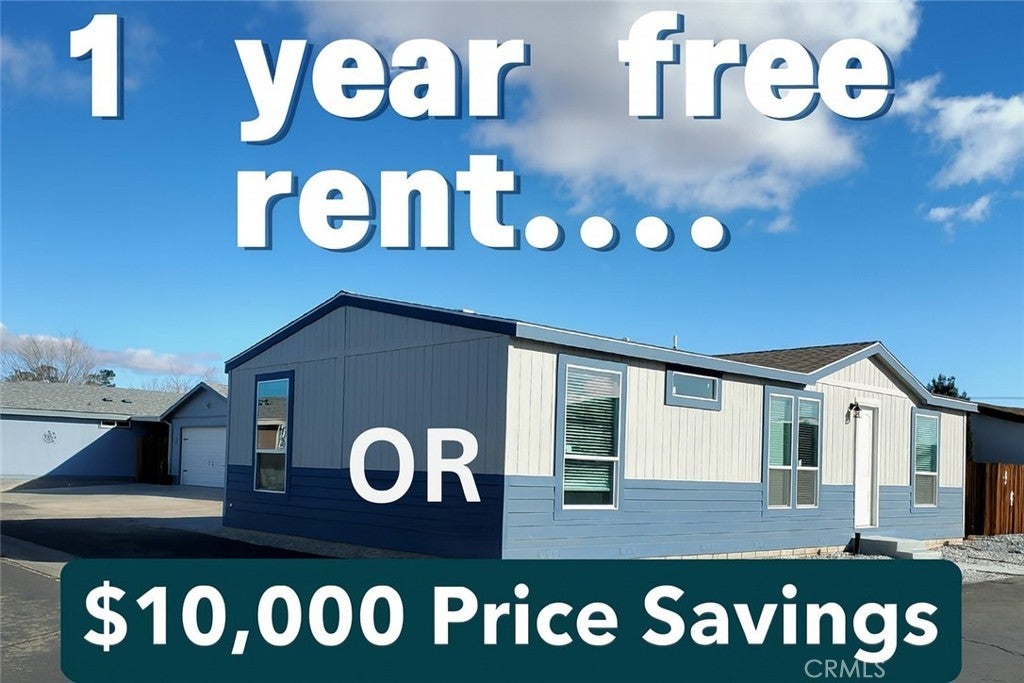 HURRY, THIS OFFER IS FOR A LIMITED TIME ONLY! BRAND NEW NEVER BEEN LIVED IN 3 bedroom, 2 bath home with 2 CAR GARAGE. MOUNTAIN VIEW VILLAS, gated senior 55+ community. This prestigious resort style living is offering one of the final opportunities to own a brand new home to a lucky few. This manufactured home will come with a 1 year home warranty, with window treatments, quality cabinetry throughout, laminate flooring, full size fridge, microwave, dishwasher, garbage disposal, & huge single sink. This is all owner occupied homes, no renter's with park rent only $751. There is a private clubhouse pool, spa, workout room, card room, full banquet style kitchen. A doggy park is available for your fur babies and RV storage upon availability. The Jess Ranch Market Place is minutes away for major shopping and entertainment. Just approximately 90 Minutes from LA & Orange Co. DEALER HAS A PREFERRED LENDER WITH AS LOW AS 5% DOWN. Dealer#1254134, SP1578710.HOME Serial #CAV110AZ24-21875A