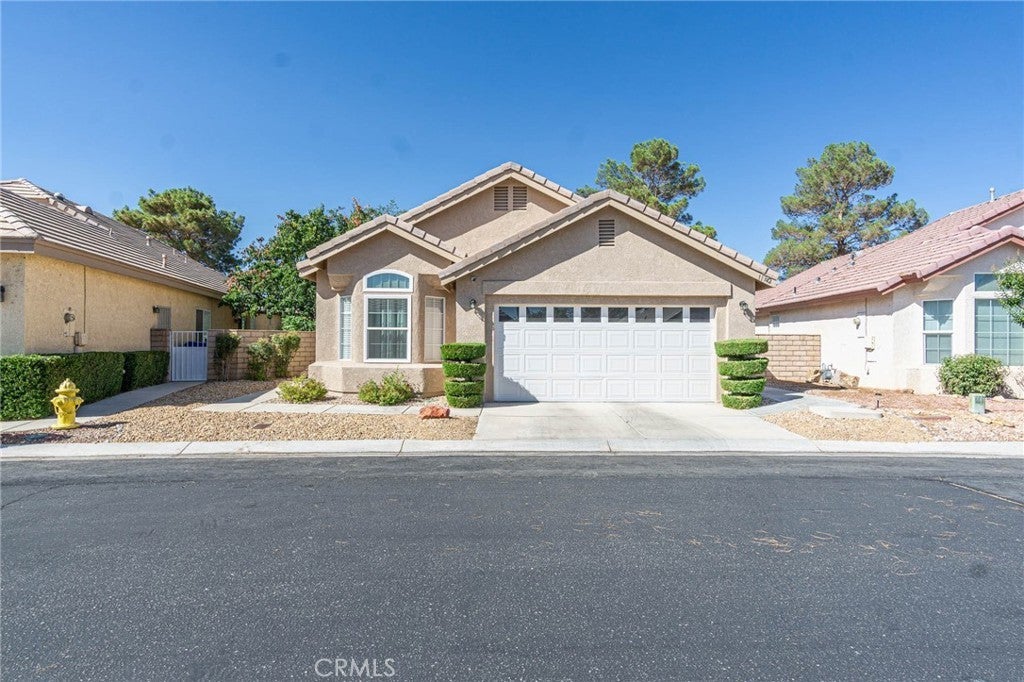 Welcome to your new home in the Wydham Rose 55+ gated community of Apple Valley. When you enter the home you will find a nice fireplace and wet bar waiting for you. The living room and a family room which looks out onto the pond area and golf course for that relaxing feeling. This home features 2 bedrooms 2 baths. Kitchen is good size with nice pantry and has eating area and desk area. There's a door in the kitchen that will lead you out the to the private patio area which you can also enjoy with trees and flowers and grass. Guest bedroom is nice size and has closet. You find indoor laundry area for your convenience. The primary suite is large and has ceiling fan. Step into the primary bath and find nice soaking tub after that long day and also has shower double sinks and walk-in closet and skylight. So go set out by the pond enjoy the sunsets and mountain views and know you have found a place to call home.