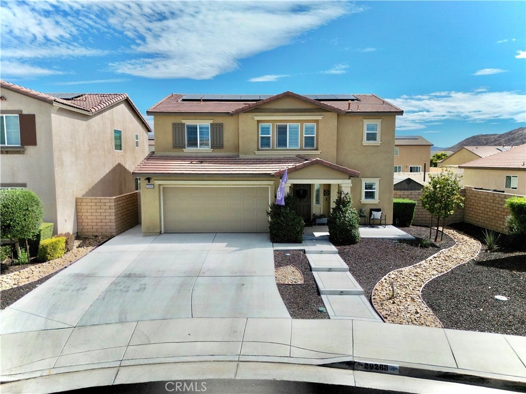 Welcome to this beautiful 3-bedroom, 2.5-bath home located in the heart of Winchester! Step through the front door and into an inviting open-concept living room that flows seamlessly into the dining area and kitchen — perfect for entertaining and everyday living. The home features upgraded shutters, stylish vinyl flooring, and fresh interior paint throughout. The first floor offers a convenient half bathroom, spacious great room, and direct access to the beautifully designed backyard. Upstairs, you’ll find a versatile loft area and a well-appointed laundry room. Thoughtful upgrades include an extended driveway, added front steps leading to the sidewalk, and a custom concrete patio with a brand-new patio cover. The backyard is a true highlight with a large lawn, landscaped details, and plenty of room to entertain — or even add a pool! Additional features: No HOA, Cul-de-sac location for added privacy, Beautifully landscaped front and backyard This home is perfectly situated just minutes from Highway 79 and the 215 Freeway, making commuting a breeze. Enjoy nearby hiking trails, Menifee Lakes, Canyon Lake, and all the Temecula Wineries just a short drive away. Don’t miss the opportunity to call this upgraded Winchester home your own!