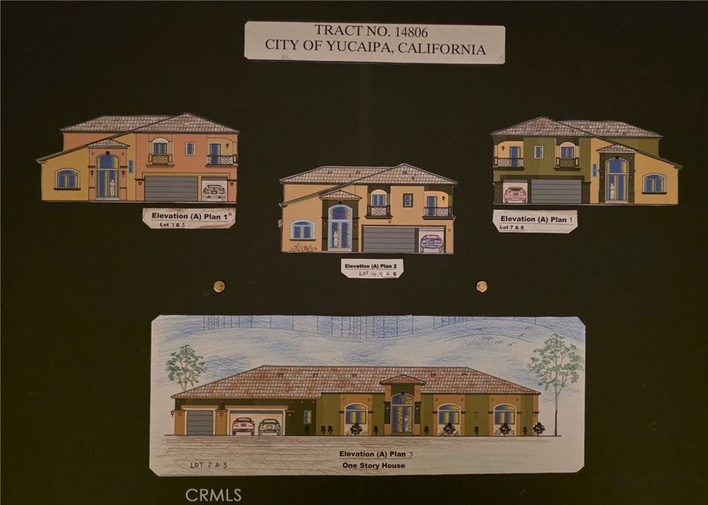 5 Lots on a Cul-De-Sac in a beautiful area in Yucaipa. Lot sizes vary between approximately 20,000 and 29,000 Sq Ft. The 5 lots out of 7 total in the tract map, 2 of them have newly built luxury homes already. Street and curbs are ready. They come with: Approved Architectural Master Plan for the 7 lots with architectural plans for the 7 homes. Permits were pulled only for 2 lots that been built already including all their fees. Plans are two story houses on 3 lots and one story on 2 lots. Soil report done for the 7 lots. Approved precise grading plan for the 7 lots. Two fire hydrants installed with approved pressure test. Storm drain line with its inlet and outlet to a big creek. Utilities: sewer line through the haul property with manholes and laterals to each lot, gas line ready to each lot, water line is ready on the curb of each lot, power; two transformers are already installed to serve three lots and the two existing homes and one more to be installed for the other 2 lots with approved plan from Edison Co. Also their underground conduits and its pad are ready and tested.