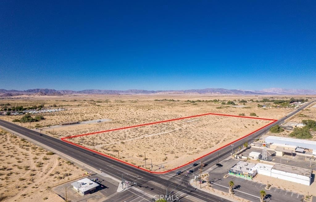 Attention Investors/Developers!!! This is the best commercial corner in 29 Palms. 17.88 acres on the corner of Adobe and Amboy and the gateway to Las Vegas. Zoned commercial, the possibilities are endless...grocery stores, big box stores, gas stations, charging stations, hotels, virtually any commercial enterprise you can think of could be developed here. Don't miss out on this great opportunity.