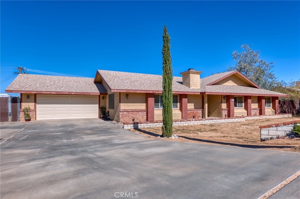 From the moment you step through the entryway, a mosaic tile inlay sets an elegant tone. The home features oversized ceramic tile floors in the kitchen and halls, new carpet and padding in the living areas and bedrooms, and a new HVAC system with upgraded ducting for year-round comfort. The spacious living room welcomes you with vaulted ceilings, abundant southern natural light, and a stone-faced fireplace with a new pellet insert and blower, the perfect centerpiece for cozy evenings. The expansive kitchen is a chef’s dream, offering solid honey oak cabinetry, stainless steel appliances including a double oven, a glass tile backsplash, and a sink overlooking the backyard. With an eat-up breakfast bar and a walk-in pantry, there’s no shortage of storage or counter space. A dining area just off the kitchen opens through new sliding glass doors to the backyard, creating a seamless indoor-outdoor flow ideal for entertaining. The guest bathroom features a long vanity with ample counter space, a shower/tub combo, and designer glass tile backsplash reaching to the ceiling. Both guest bedrooms are generously sized with ceiling fans, new carpet, and great natural light. The primary suite offers vaulted ceilings, plush carpet, and a private bath with a large walk-in shower and tile countertops.Step outside to your private backyard oasis, a north-facing covered patio perfect for lounging in the shade, an above-ground pool with wood decking, and lush desert landscaping accented by fruit trees and a storage shed. The yard is fully fenced and thoughtfully designed for low maintenance living. Additional highlights include a 30-amp RV hookup with clean-out and new retaining walls in the front yard, adding both function and curb appeal. Ideally situated just minutes from shopping, dining, and highly rated schools, this home also offers quick access to the Black Rock hiking trails, Joshua Tree National Park, and the vibrant arts and dining scene of downtown Yucca Valley. This home is prefect for a full time residence or desert retreat.