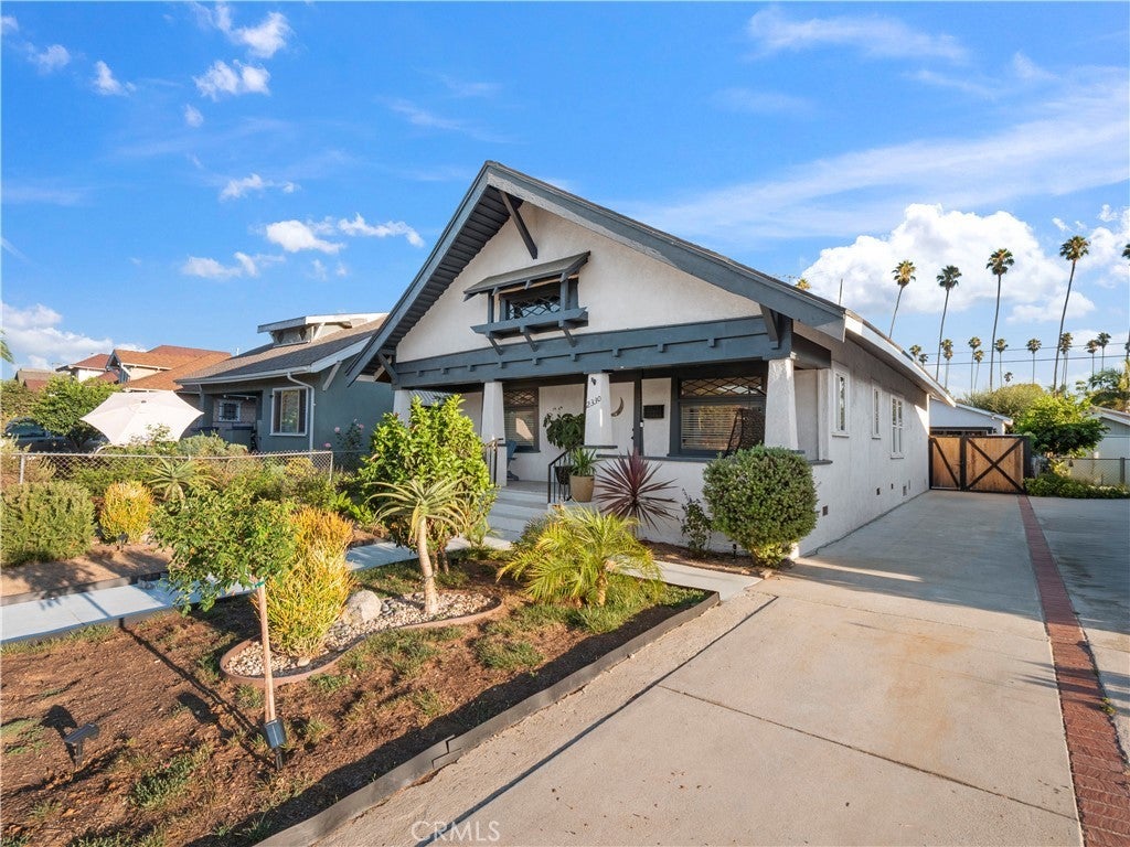 Step into a rare blend of historic charm and modern luxury in the heart of Jefferson Park’s HPOZ at this stunning 3-bedroom, 2-bath Craftsman-style bungalow. A spacious, inviting front porch welcomes you before you even step inside—perfect for morning coffee, relaxing afternoons, or simply enjoying the charm of this historic Craftsman street. As you enter, the living room showcases stunning beamed ceilings with elegant crown molding and intricate paneled detailing overhead, creating a warm yet sophisticated feel. As you flow into the kitchen, the ceilings rise even higher, enhancing the open, airy ambiance and making the heart of the home feel even more inviting. Remodeled around 2022, the residence boasts a host of upgrades, including a newer tankless water heater, newer 200-amp electrical panel, as well as fresh cosmetic enhancements like interior/exterior paint, newer flooring, upgraded landscaping, fully renovated kitchen and bathrooms, recessed lighting throughout, and the foundation was redone in 2024. The chef’s kitchen showcases modern cabinetry, quartz countertops, newer appliances, and flows seamlessly through French doors to an entertainer’s backyard complete with a built-in grill and pergola attached to the east side of the garage providing tons of shade for more entertaining or relaxation. The spacious primary suite also opens via French doors to the backyard, creating a perfect indoor-outdoor retreat. The detached 2-car garage is a rare find in this neighborhood and is finished with a half bath, electricity, plumbing, and gas hook-up already in place—ready and ideal for a future ADU conversion. Ample driveway parking adds even more convenience, and there is no need for parking replacement if garage converted into ADU.