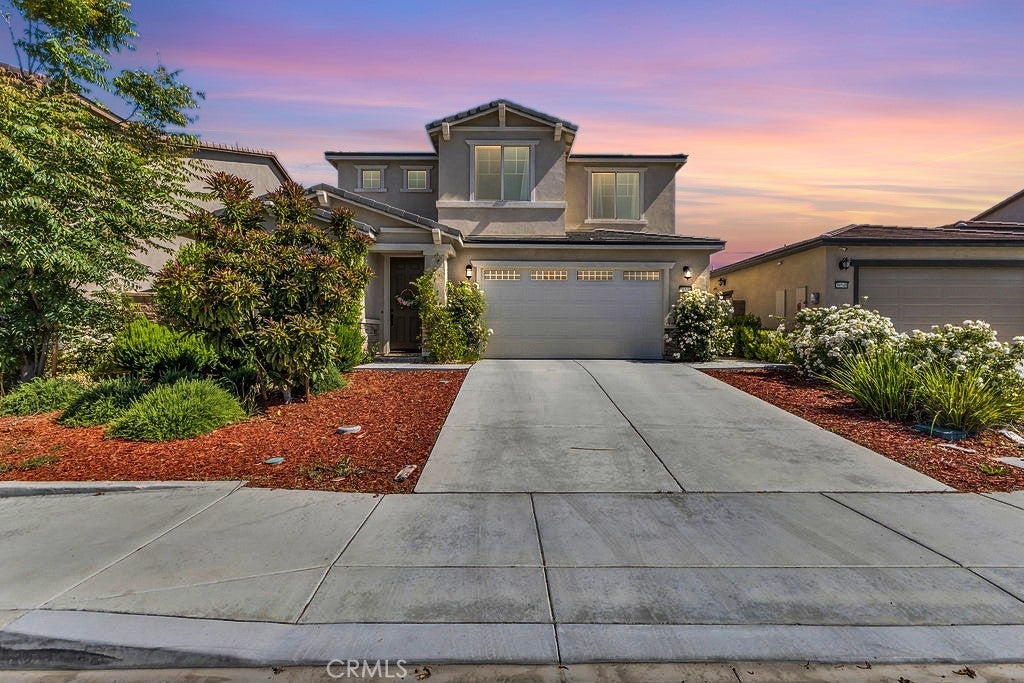 Welcome to 30536 Astoria Lane in the desirable Spencer’s Crossing community of Murrieta. This spacious 5-bedroom, 2.5-bathroom home offers an ideal blend of comfort, functionality, and style. Downstairs features a versatile flex room with a walk-in closet, perfect for a home office or potential fifth bedroom (with closet), along with wood laminate flooring throughout and extra storage under the stairs. The open-concept layout includes a formal dining room, a convenient half bath with pedestal sink, and an office nook off the living room. The kitchen is equipped with granite countertops, a large island, stainless steel appliances—including a gas oven, overhead microwave, dishwasher, and refrigerator—plus a walk-in pantry and a built-in coffee bar. Upstairs you’ll find four additional bedrooms, making a total of five rooms, as well as a large open loft and a generously sized laundry room with washer/dryer hookups, shelving, and cabinetry. Each of the three guest bedrooms includes a walk-in closet, and the guest bathroom features dual sinks and a full tub/shower combo. The luxurious primary suite offers a private retreat with an oversized soaking tub, separate walk-in shower, dual vanities with an expansive mirror, a private toilet room, and a massive walk-in closet. Exterior highlights include a mix of brick and vinyl fencing, a concrete patio in the backyard, and a small retaining wall garden surrounding the yard with no direct rear neighbors and peekaboo mountain views. The front yard is beautifully landscaped and features a roll-up garage door, tile roof, and stucco finish. Located in the sought-after Spencer’s Crossing neighborhood, residents enjoy access to multiple sports parks, walking trails, and playgrounds, making this home an exceptional opportunity in one of Murrieta’s premier communities.