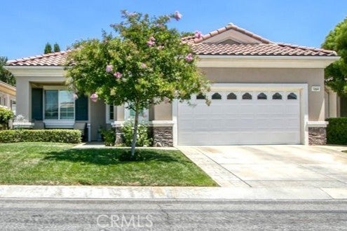 Discover the perfect senior lifestyle in this beautiful 2 bed 2 bath home, situated within the secure, gated 55+ community of Solera at Oak Valley Greens in Beaumont. With the Large Mello/Roos bond already paid off, you can enjoy peace of mind from day one. This charming residence offers abundant storage with spacious walk-in closets in both bedrooms, along with central heating and air for year-round comfort. The kitchen features elegant Corian countertops, a pantry, and a breakfast bar—ideal for casual dining and gatherings. The laundry room, complete with a sink and cabinets, adds convenience to everyday living. Step outside into your private rear yard, beautifully landscaped with mature trees and shrubs, creating a serene outdoor sanctuary perfect for relaxing, gardening, or entertaining.